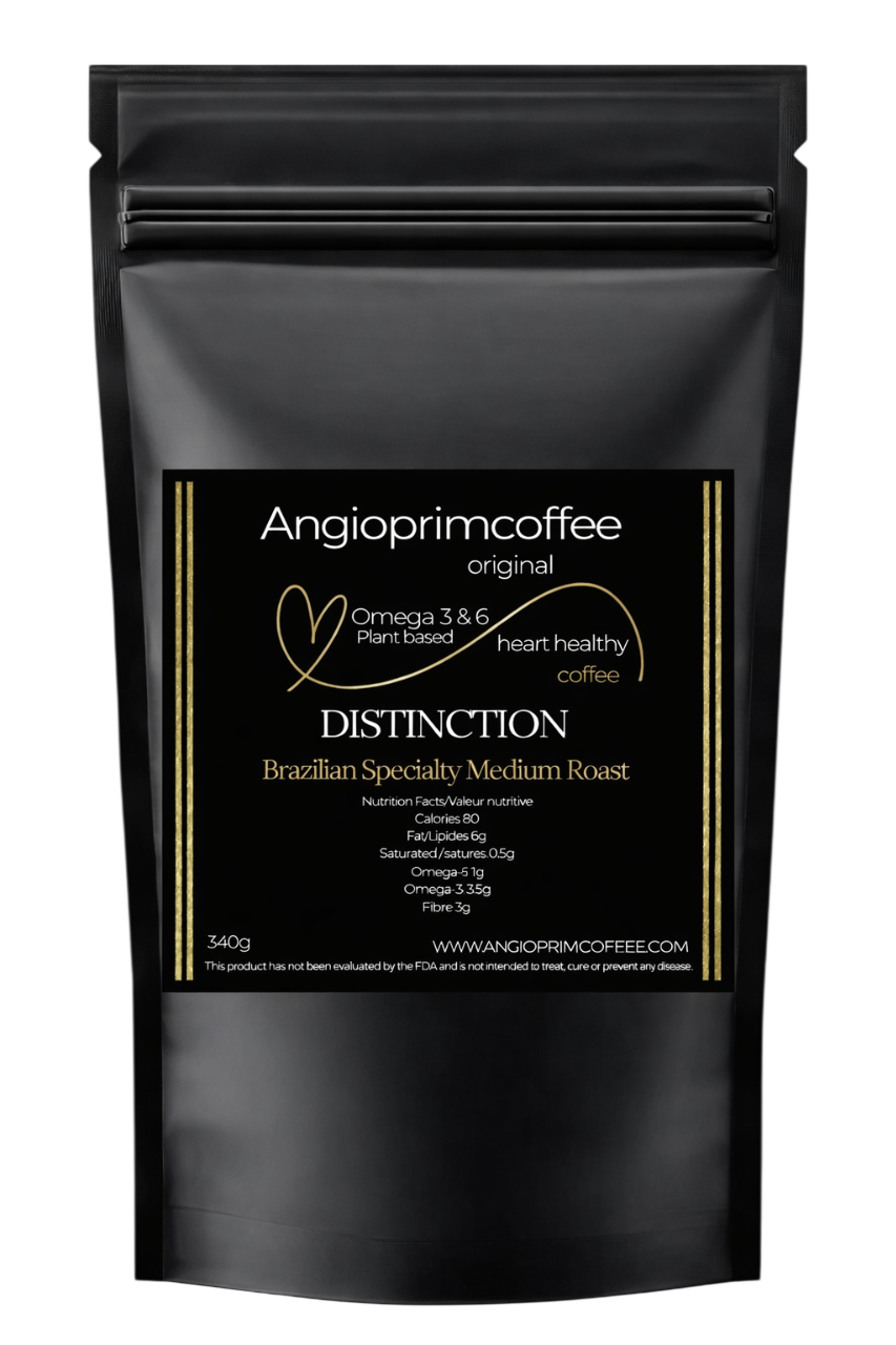 Welcome to Angioprimcoffee Original, where your daily cup of coffee becomes a source of nourishment, clarity, and vitality. Born from the rich heritage of Brazilian coffee and inspired by a passion for better living, we set out to create a coffee that fuels both body and mind. The result is a premium blend infused with plant-based Omega-3 and Omega-6 delivering wellness benefits without changing the taste you love. Our journey begins with hand-selected Brazilian beans known for their smooth, bold flavour profile.
